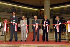 当日は猛暑にも関わらず熱心なアマチュア無線家と関係者などが両日で、のべ31,000名(初日20,000名、2日目11,000名)が来場し、来場者はさまざまな展示や催事を楽しみました(写真はテープカット 左から、KX9Xショーン・クスコARRLコンテスト・マネジャー、井上徳造JAIA会長、JA1AN原 昌三JARL会長、インドネシアの連盟(ORARI)のYB0AAマニラ副会長、そしてDARC国際チーム代表のDL1BDFランドルシ氏)。