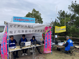 連携運用にご協力くださった東海総合通信局電波監理部監視課加藤課長様ほか2名の監視官の方、木村東海地方本部長・堀内監査長、静岡県支部監査指導委員及び静岡県支部からの多数の協力を得て運用しました。