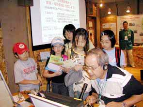 「わんパク宝島」パビリオン1階に設置された特別記念局8J2AIは、子供の日特別運用に備えて、南極に関する各種パネル展示をおこなってきましたが、この日は子供たちが南極に対して、どのような興味を持っているか、どんなことを知りたいかを調べるため、当日は開場後から来場する子供たちに「南極に聞いてみたいこと」のアンケートを実施。50人の子供たちがアンケートに協力してくれました(写真上左)。 またお昼からは、毎日のレギュラー催事である工作教室をお休みにして、南極の説明や南極に関するビデオの上映なども実施するかたわら(写真上右)、8J1RLのシグナルの入感を待ちました。