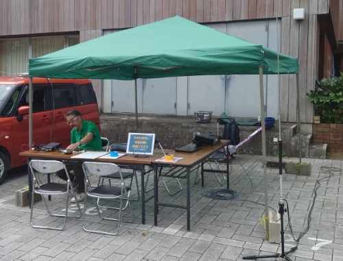 防災訓練参加者が、積極的に体験運用の希望を申し出ていただけました。また、市内のアマチュア無線家の訪問があり、弊クラブに入会していただけましたことが嬉しく感じました。